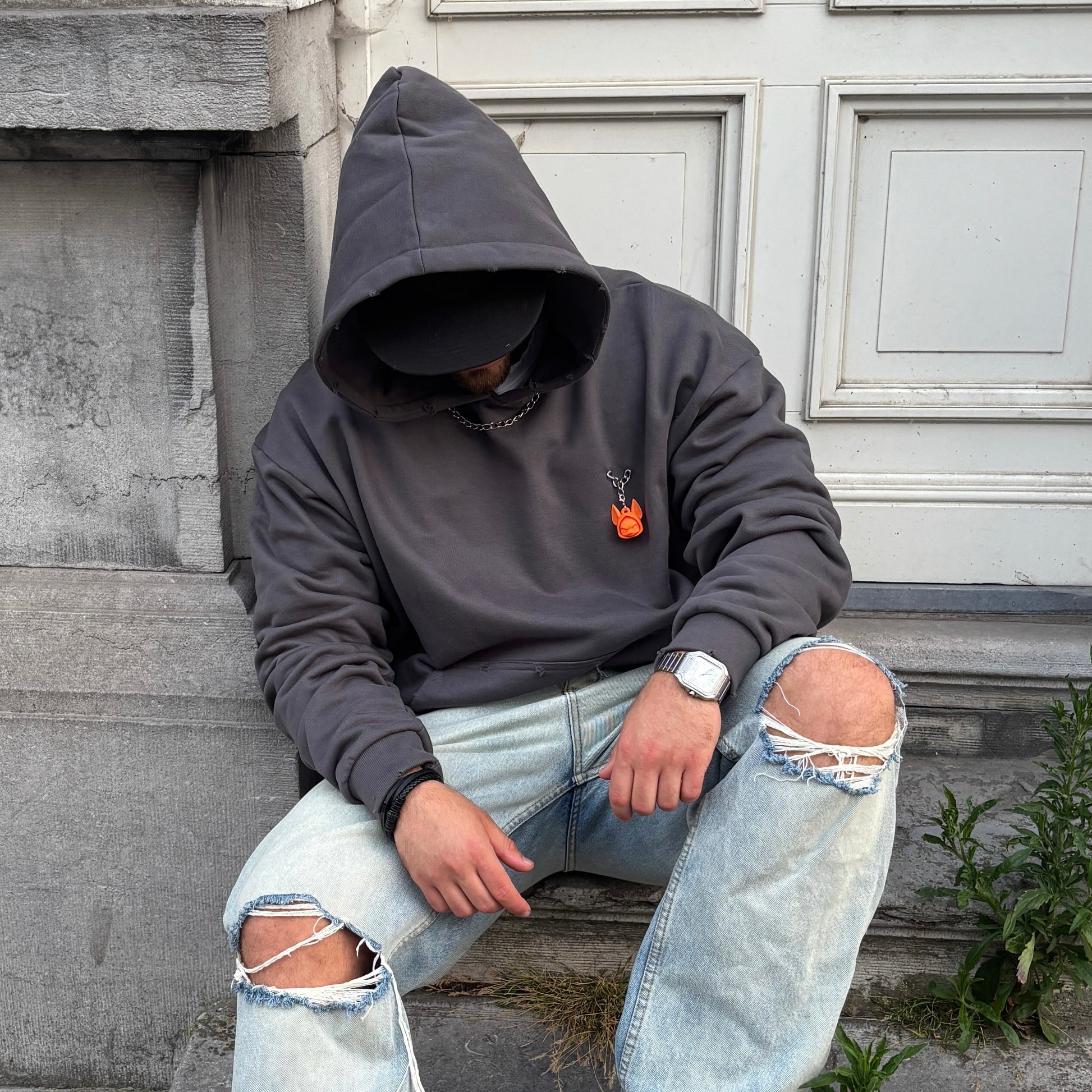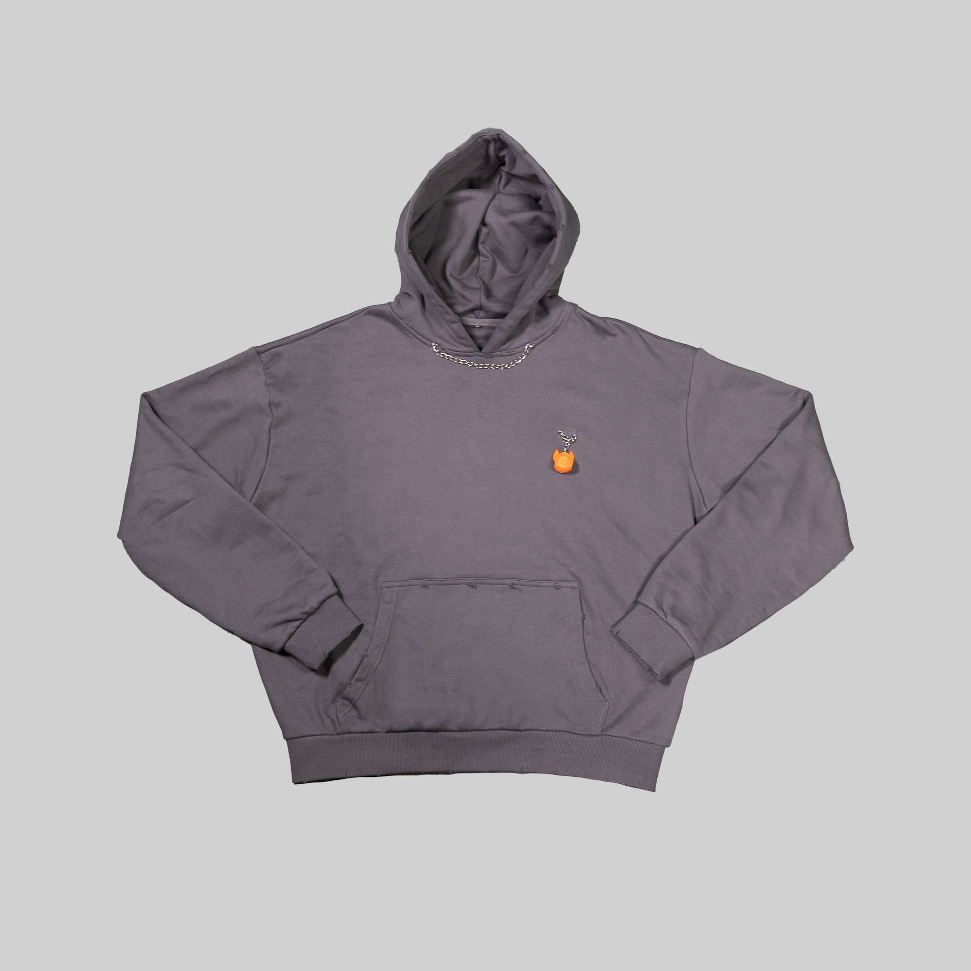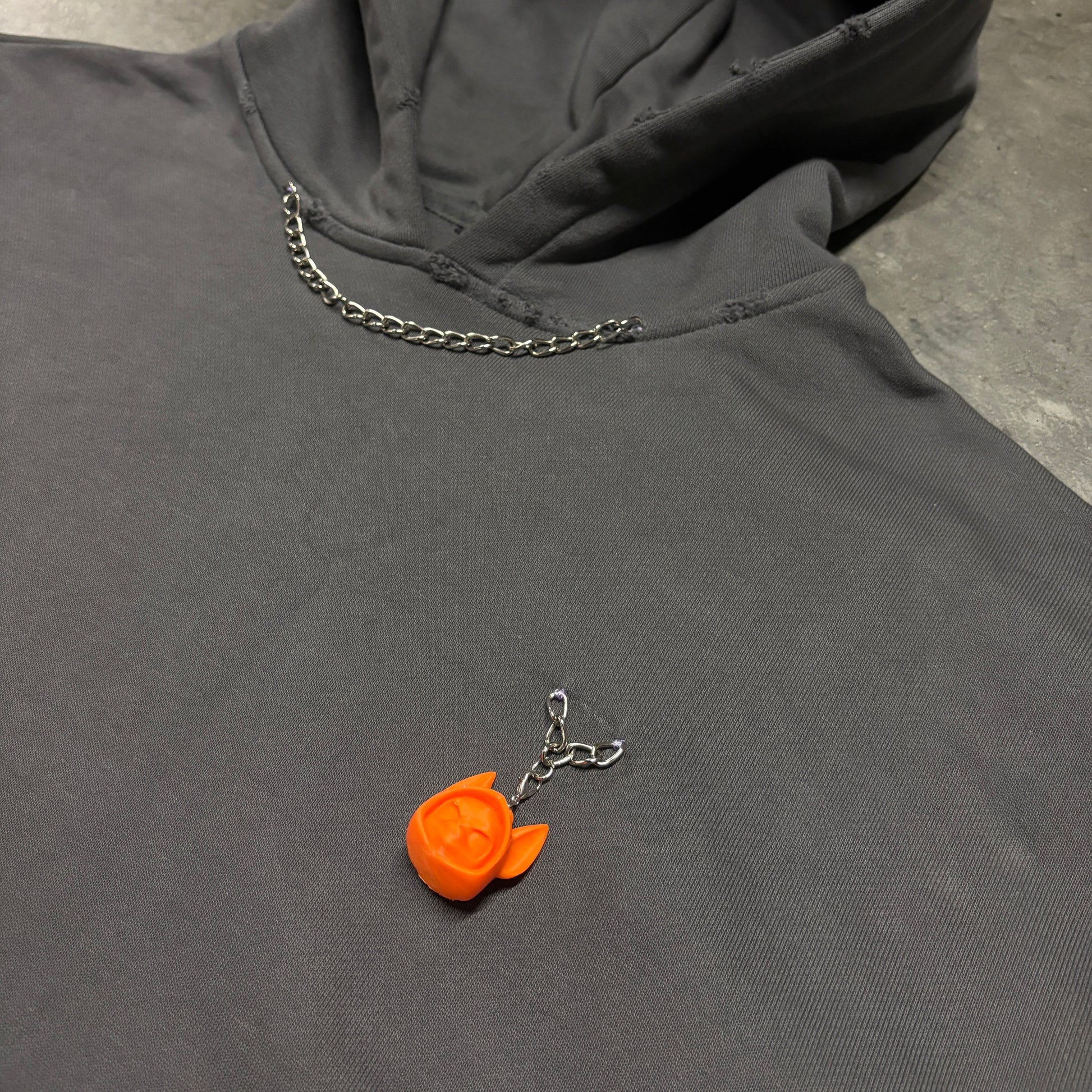 This hoodie doesn’t follow — it leads.Crafted from heavyweight 460 GSM cotton, it features hand-distressed details, custom-sewn chains, and a removable puppet patch that lets you switch identities on the go. Inspired by the grit of walking strays through concrete chaos, the Distressed Dog Walker Hoodie embodies control, rebellion, and raw individuality. Oversized fit. Heavy attitude.