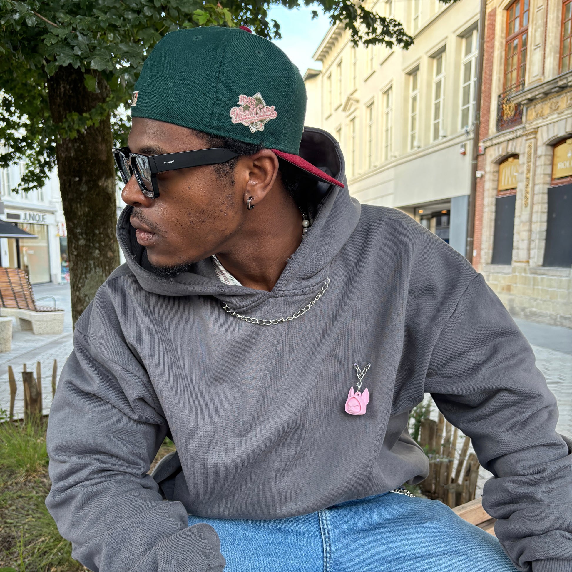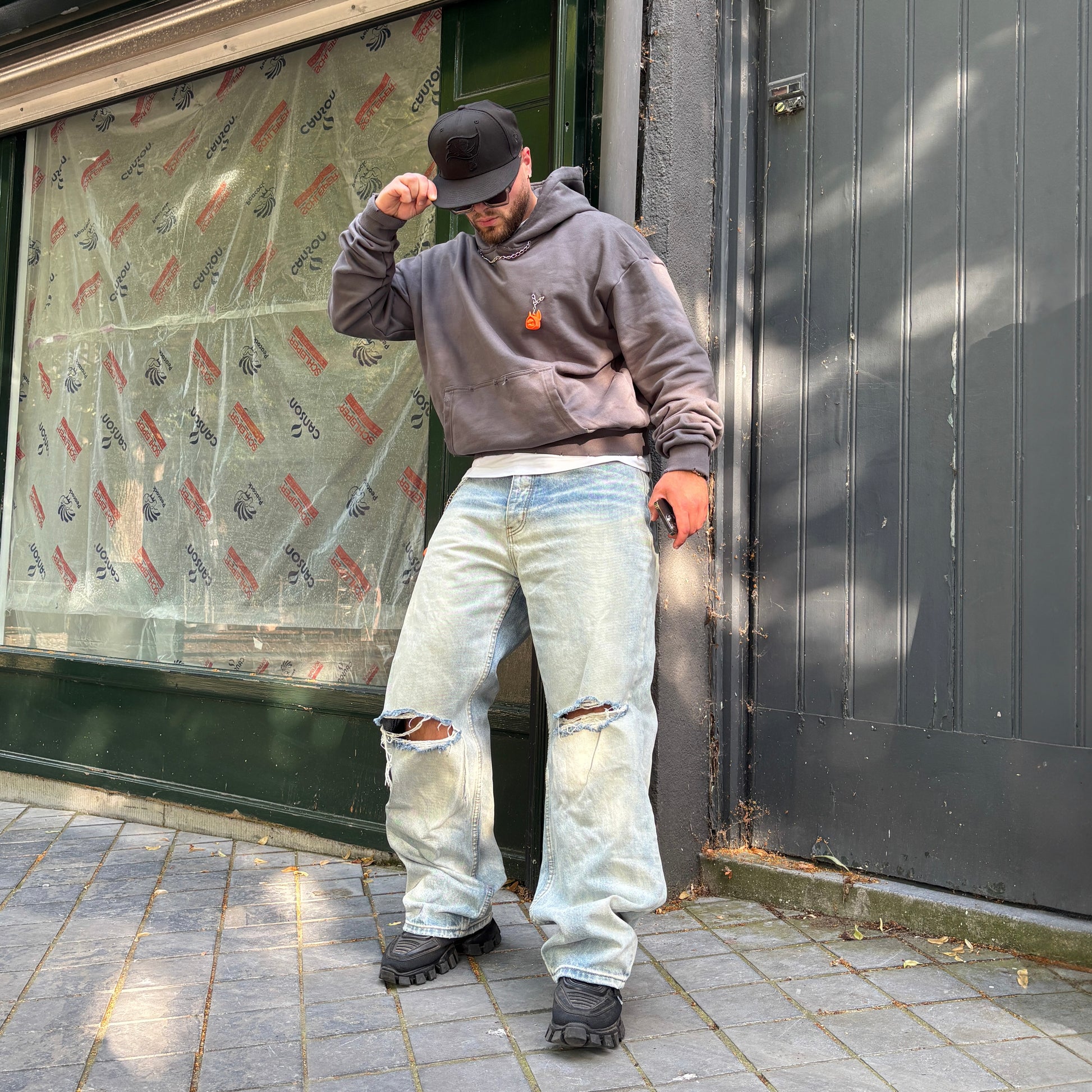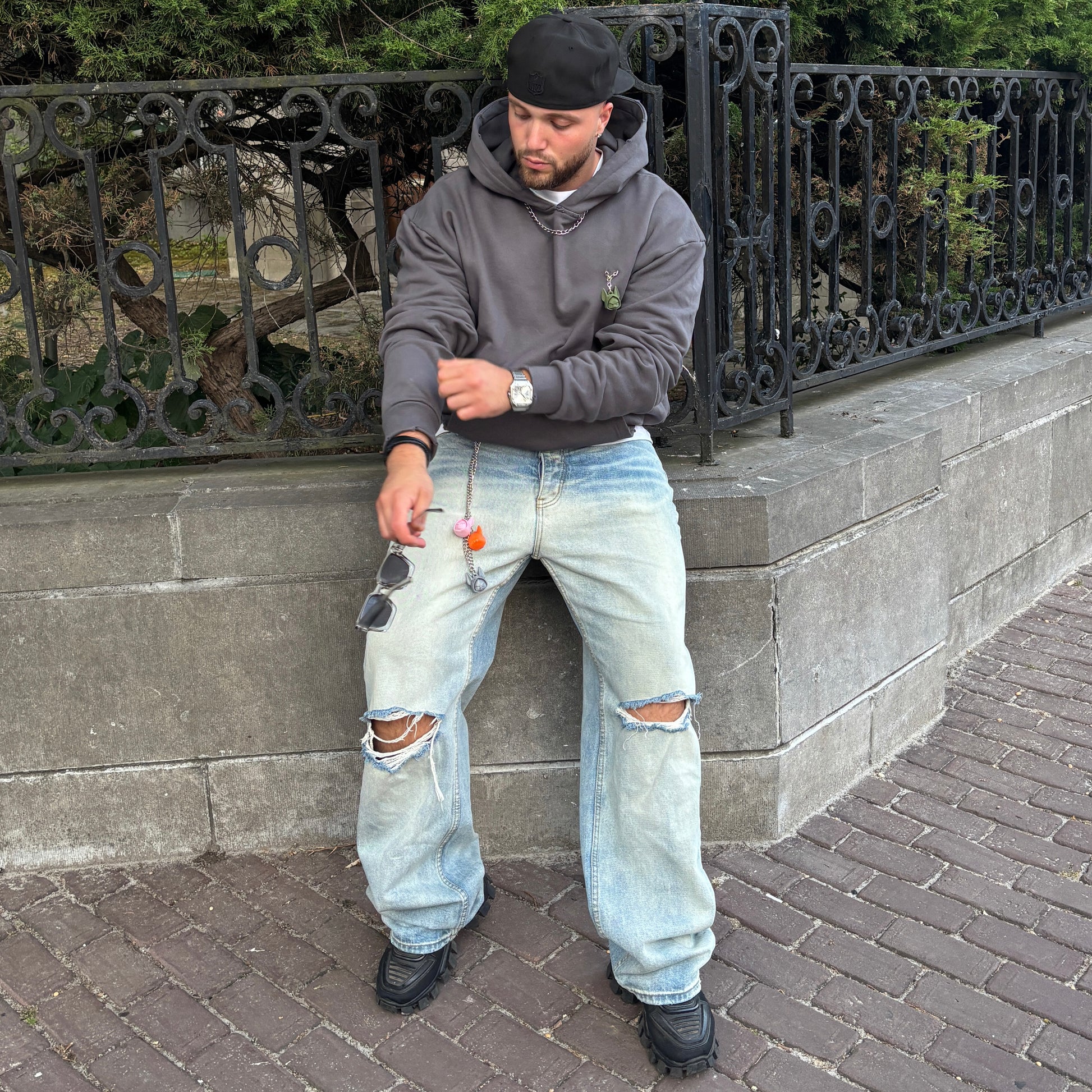 This hoodie doesn’t follow — it leads.Crafted from heavyweight 460 GSM cotton, it features hand-distressed details, custom-sewn chains, and a removable puppet patch that lets you switch identities on the go. Inspired by the grit of walking strays through concrete chaos, the Distressed Dog Walker Hoodie embodies control, rebellion, and raw individuality. Oversized fit. Heavy attitude.