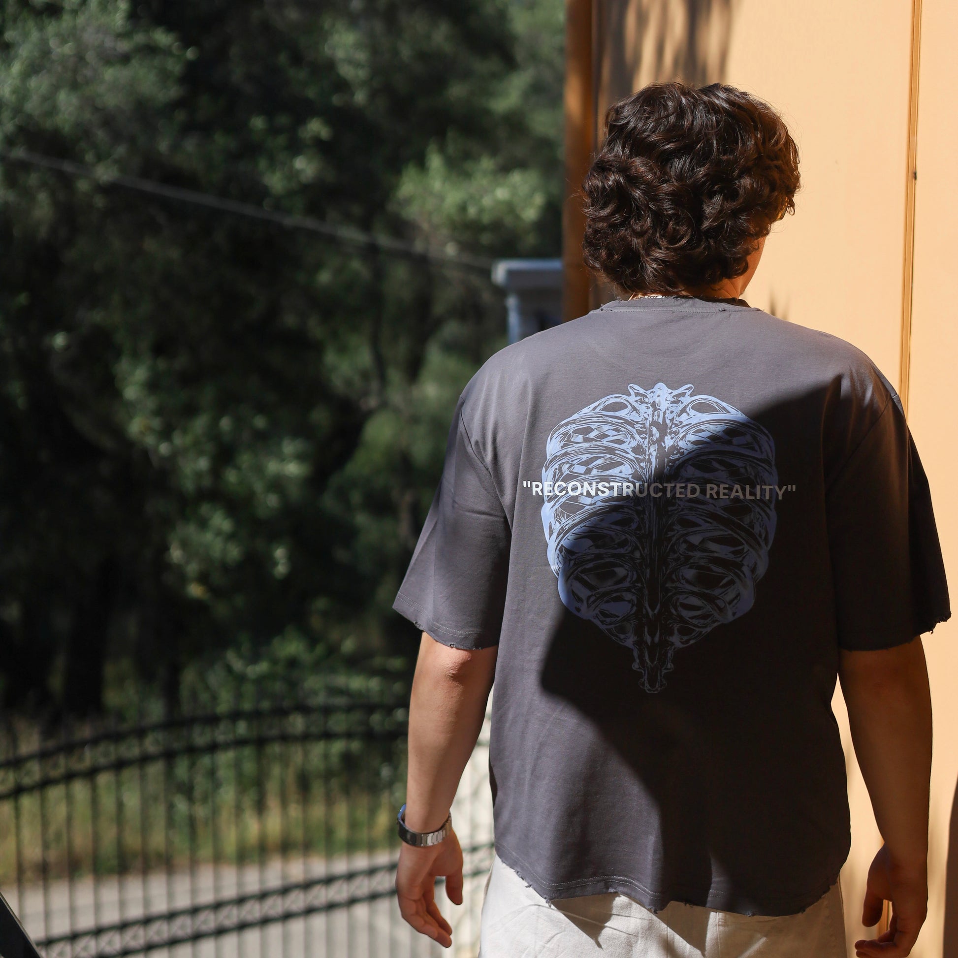 This T-shirt features the bold statement "RECONSTRUCTED REALITY" — a reflection of STRNGR’s ongoing exploration of altered perspectives and deconstructed norms. With a relaxed oversized fit this is an ideal summer T-shirt.